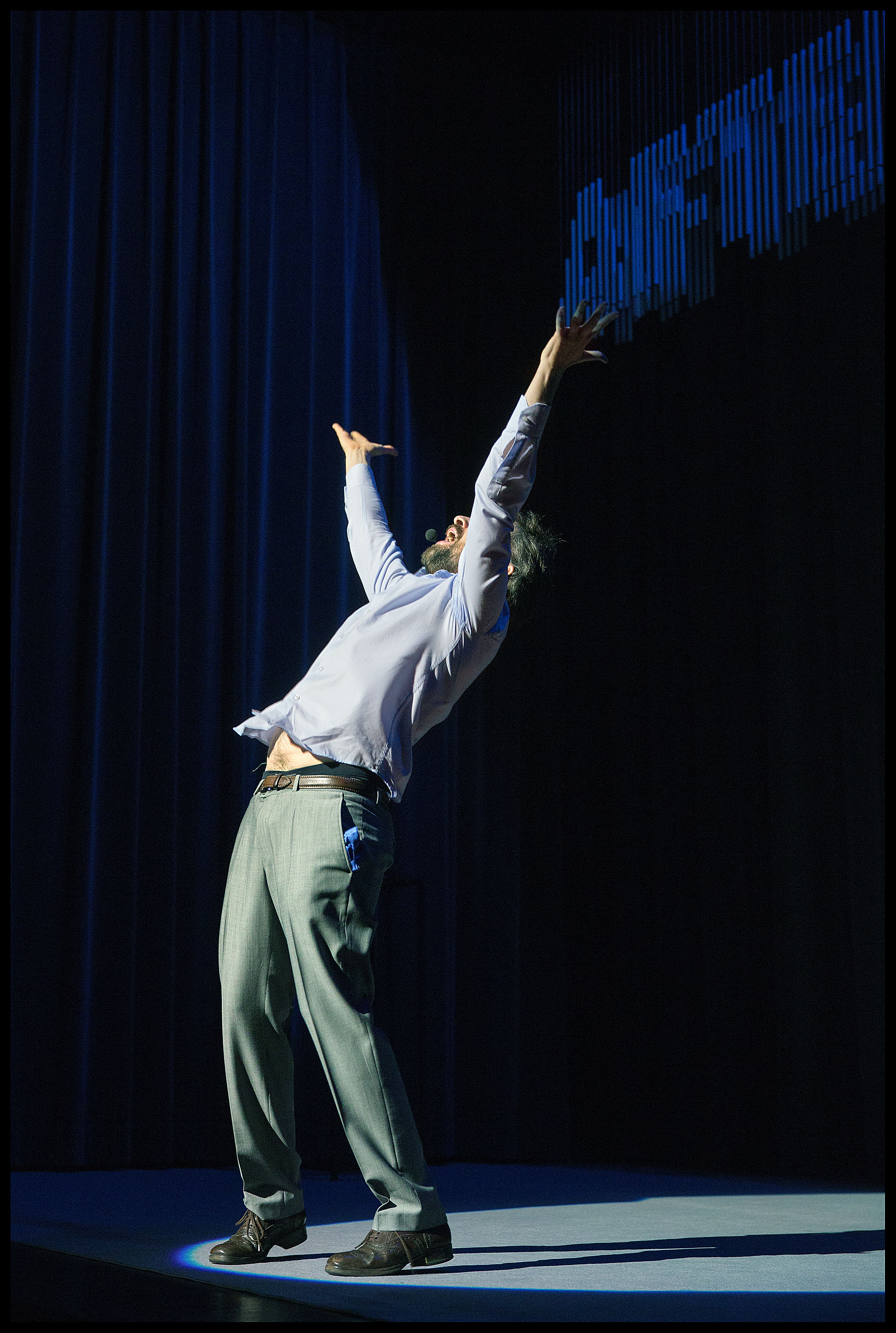 UTOPIA is a fictional conference, a theatrical celebration,during the course of which an architect shares his visions of the future: an unprecedented architectural dream, a real utopian explosion, as a solution to the social, demographic and ecological challenges of our era.