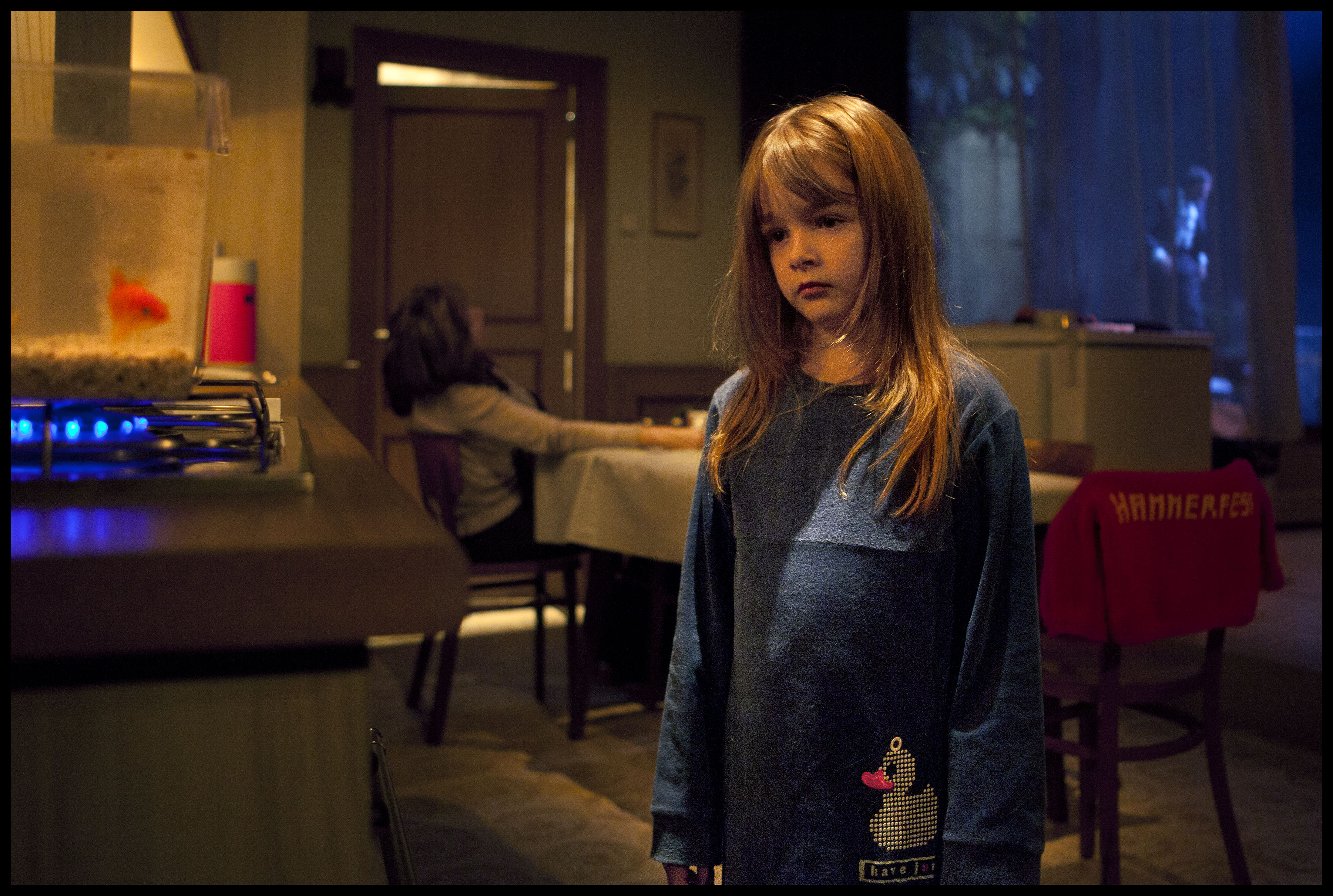 In a suburban home, in an adjoining kitchen and living room, lives the Sennes family, folded in on itself. Alain, the father, cuts and packs smoked salmon in his own home, for a Norwegian company. The mother, Claudia, is a secretary for an insurance company, clinging to the clearly defined framework of a reality made up of contracts and risk assessment. Yvonne, the aunt, is a bus driver and spends her time going round and round town. Stagnating in this lethal inertia, young Anni carries round her goldfish bowl, and tries to make sure she doesn’t move it too violently while her family encourages her to feed a dream: one day they’ll go to Norway to visit Dad’s company! On her seventh birthday, Anni decides to take matters into her own hands, determined not to give anyone any choices. Thanks to a radio auction, she disposes of her family’s very existence. Everything changes.