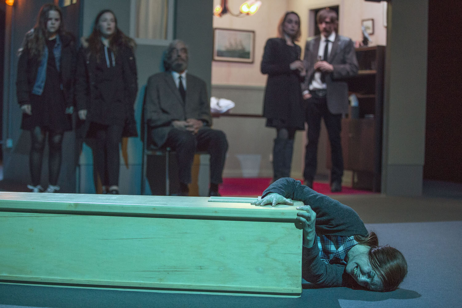 TRISTESSES is a theatrical performance whose main theme is the relation between power and sadness. Borrowing the conventions of detective fiction and political comedy, Anne-Cécile Vandalem explores with humor one of the most formidable political weapons of the day: making the masses sad. Through cinematographic stage design, she shines a spotlight on the power of the media and the ways censorship functions in the open or, insidiously, in the shadow.